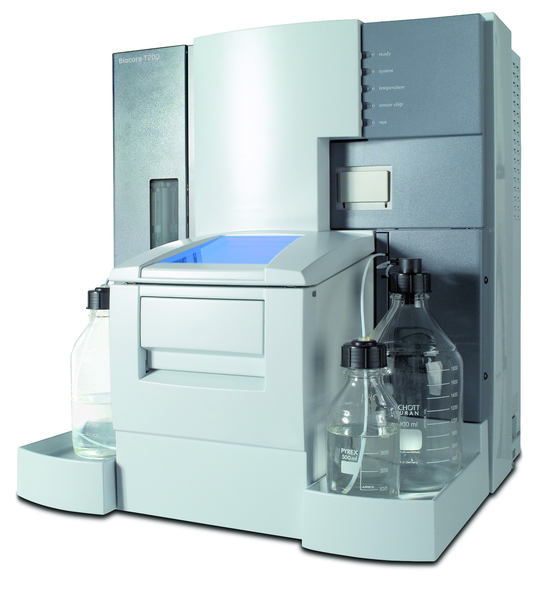 生物药物的研发过程创造了针对各自药靶并具有高亲和力的新抗体。在筛选用于诊断过敏性检测的抗体时,Biacore T200可用于帮助多种强亲和力抗体的分级。同时,在抗体研发过程中,由于Biacore T200提供的高灵敏度,实验可以在很低的蛋白偶联密度下进行,从而可以准确测定溶液中抗体的亲和力而不受“亲合效应”(即一个双价抗体既可能与芯片上的一个抗原分子作用,也可能与芯片上两个抗原分子同时作用,从而影响抗原-抗体间真实的解离速率,因此被形象的称为“舞蹈效应”)的干扰。